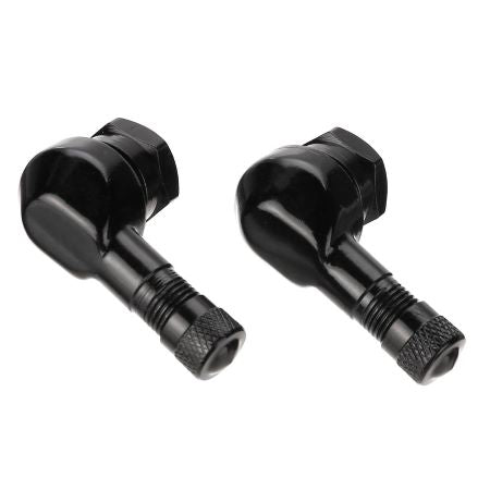 - Angled valve stem is a direct 90° bend from the surface of the wheel rim.